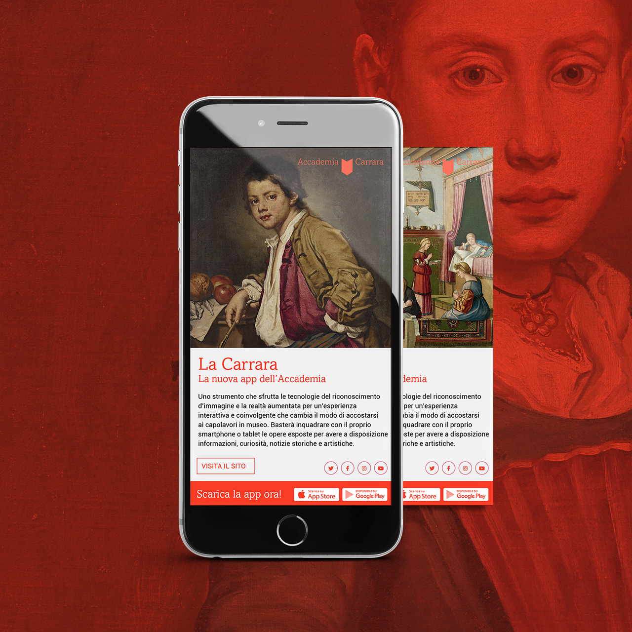 Il sito app.lacarrara.it accompagna i visitatori nella scoperta della nuova app e permette visite tematiche della pinacoteca da casa attraverso i percorsi Vista da Casa.